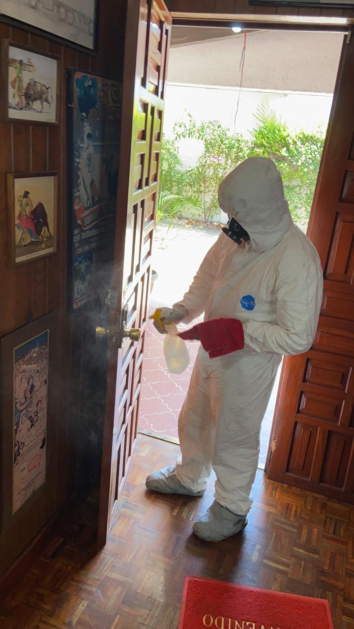 Consiste en desinfectar y/o sanitizar las áreas interiores de hogares u oficinas, haciendo énfasis en las zonas de mayor contacto entre los ocupantes (chapas,puertas, ventanas, cajones, entre otros).